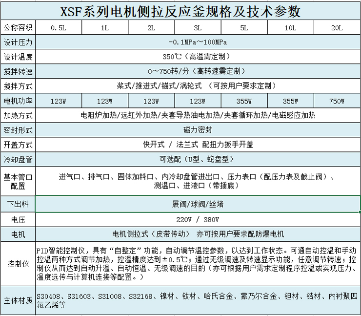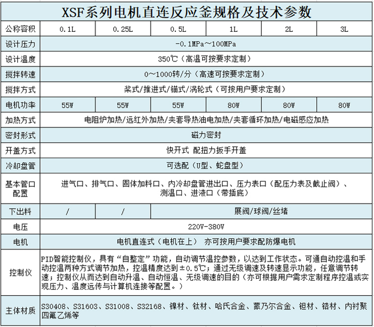 反应釜的结构形式、压力高低、加热方式、搅拌桨形式可根据用户技术条件需要进行设计制造,选用材料可根据用户反映介质需要,制造各种不锈钢、钛、镍以及碳钢反应釜、反应塔、反应罐、冷凝器、换热器、储罐等以及非标准化工设备。可根据用户技术条件生产磁力偶合器与反应容器配套,其大小可以任配。